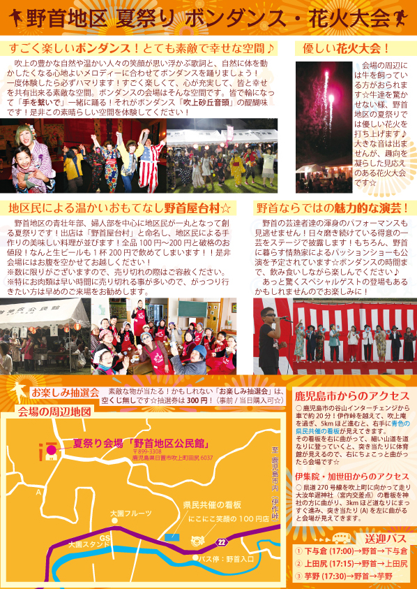 野首地区夏祭り ボンダンス・花火大会